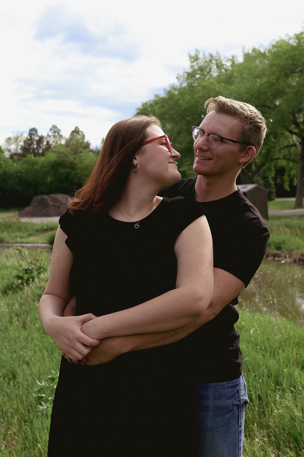 For this couple’s shot, I wanted the photos I took to feel like my clients. I spent the beginning of the shoot getting to know these two and their story. Their love felt sweet and soft, and so I wanted the photos to reflect that. I set my aperture low so these two were more in focus than the background. We had an evening shoot, so the sunlight was still bright but not harsh. To complete the look, I had them pose looking at each other so they were not focused on the fact that they were getting their picture taken.